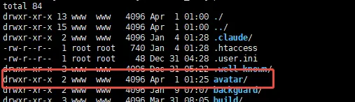 最后是怎么发现的呢?去看了一下服务器上目录的权限。